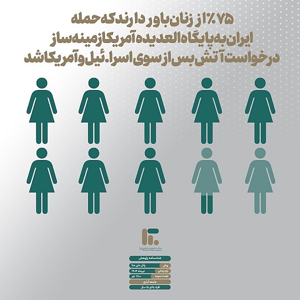 🔸 همچنین ۷۸.۵ درصد از پاسخ‌دهندگان از عملکرد نیروهای مسلح جمهوری اسلامی ایران در حملات به مواضع اسرائیل ابراز رضایت کرده‌اند.