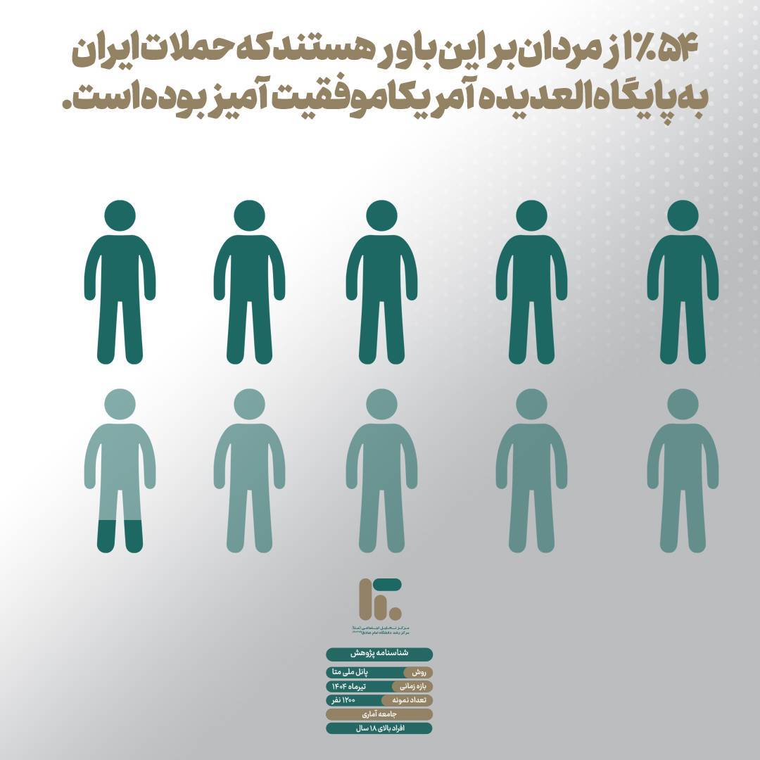 🔰 داده‌های این پیمایش از ۱۲۰۰ نفر افراد بالای ۱۸ سال از سراسر کشور، از نمونه ملی، در تیرماه ۱۴۰۴ و در بستر پانل ملی متا گردآوری شده‌اند.
