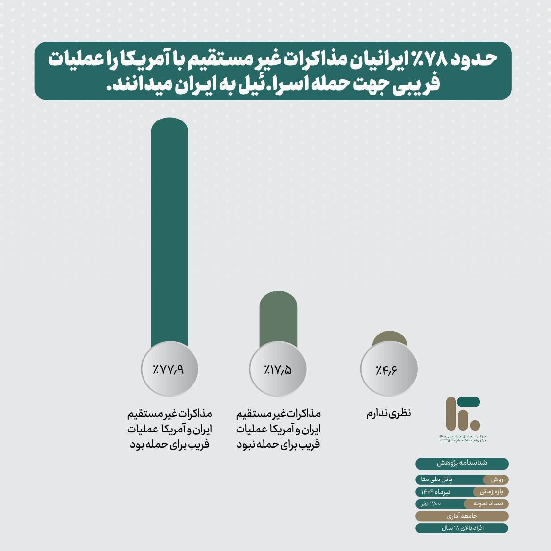 پس از وقوع جنگ ۱۲ روزه میان ایران و اسرائیل، که هم‌زمان با مذاکرات غیرمستقیم میان ایران و دولت آمریکا جریان داشت، مرکز تحلیل اجتماعی (متا) در یک پیمایش طولی، روند تغییر نگرش مردم نسبت به مذاکره با آمریکا را بررسی کرده است.